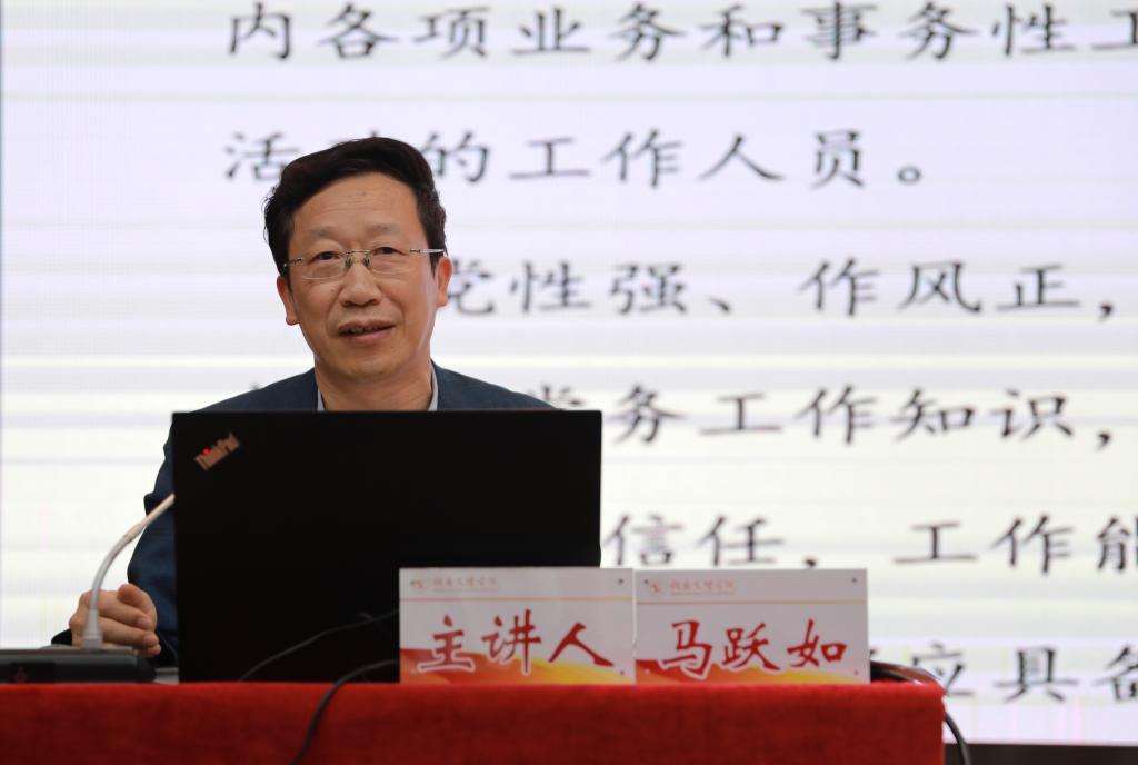 (记者 易姣 摄影 湛心愉 李佳馨 姚丹)10月25日,我校在图书馆多功能报告厅开展了第二场党务工作者培训。中南大学党委常委、组织部长马跃如教授以《党务干部的角色定位及胜任素质要求——基于实践和感悟》为题,给学校2021年党务工作者培训班全体学员上了一堂精彩的培训课。培训课由学校党委委员、副校长戴军主持。
